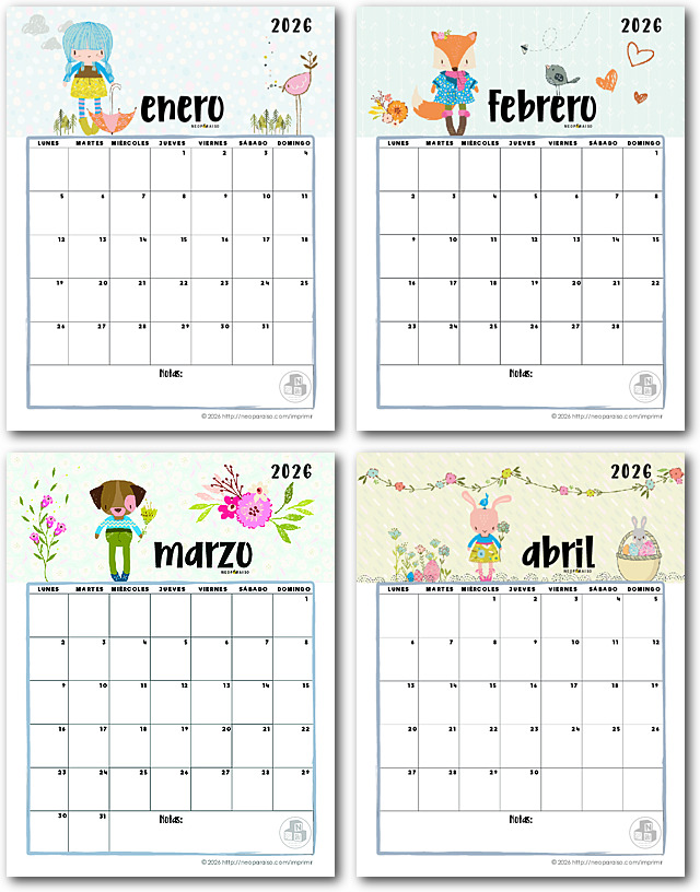 Descargue e imprima este calendario que incorpora toda esta información de manera compacta para que imprima cada mes en una hoja separada y tenga espacio para hacer anotaciones adicionales